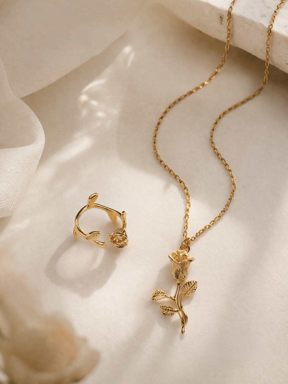 Golden Rose Bloom Set captures the beauty of a blooming rose in a delicate and timeless design.
